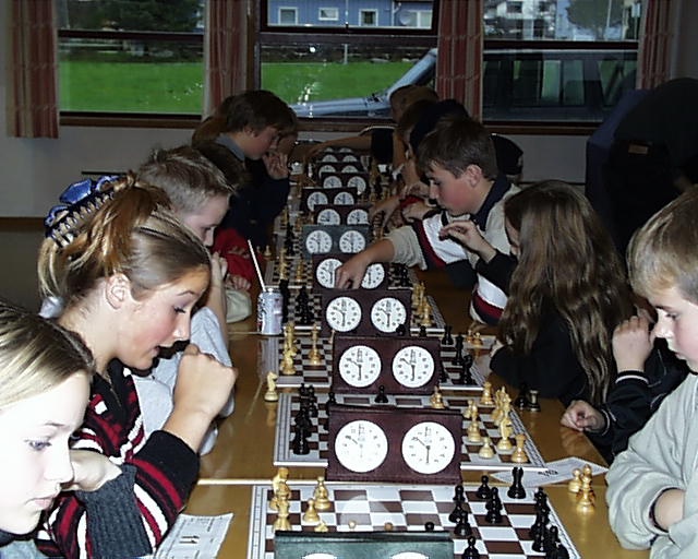 62 ungdommer med sands for sjakk var med i Hallen.