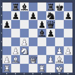 (Bedre er 18.-d6)19.Txe5 Her hadde hvit en annen raffinert mulighet i: [19.Sd5!! exd5 20.Txe5 Sxe5 21.Dxd5+ De6 22.Lxe5 Ta8 23.Dd4 Dh6 24.Ld5+ Tf7 25.Te1] 19...Sxe5 20.Te1 Sc6 21.Lxc6 dxc6 22.Sd5 Dd8 23.Dd4 Dd7 1–0 |