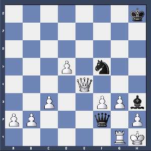 Lg2+ 2.Txg2 Df1+ 3.Rg1 Sg3+ 4.hxg3 Dh3# 0–1