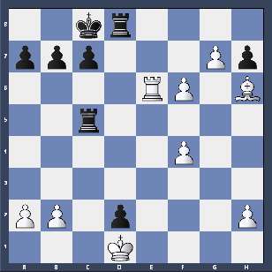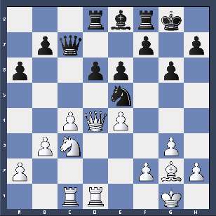 Svart står allerede til tap [ Svart bør spille:18...Da5 19.f4 Sc6 20.De3 Med liten fordel for hvit] 19.c5 Sc6 20.cxd6 Da5 21.De3 [Eller 21.Df6 Ld7 22.Sa4 feks. 22...Tc8 23.Sc5 Sb8] 21...e5 22.Td5 Db4 23.Tcd1 Ld7 24.Dc5 Dxc5 25.Txc5 Le6 26.Sd5 f6 27.Sc7 Lf7 28.Lh3? [28.Txc6! bxc6 29.Sxa6 Le6 30.Sc5 Kf7 31.f4 Ld7 32.a4] 28...Sd4 29.d7 b6 30.Txd4! exd4 Sluttspillet klarer 12 åringen mesterlig! 31.Tc6 h5 32.Txf6 g5 33.Lf5 Kg7 34.Td6 a5 35.Txd4 Kf6 36.Td6+ Ke7 37.Txb6 Lg8 38.Ta6 Tf6 39.Txa5 1–0 39...Tc6 40.Sd5+ Lxd5 41.exd5 Tc1+ 42.Kg2 Tf8 43.d6+ Kxd6 44.a4 Tc5 45.Ta6+ Kc7 46.g4 hxg4 47.Lxg4 Tc2 48.Kg3 Tc3+ 49.f3 Txb3 50.Ta5 Ta3 51.Tc5+ Kd6 52.Tc8 Tfxf3+ 53.Kg2 1–0